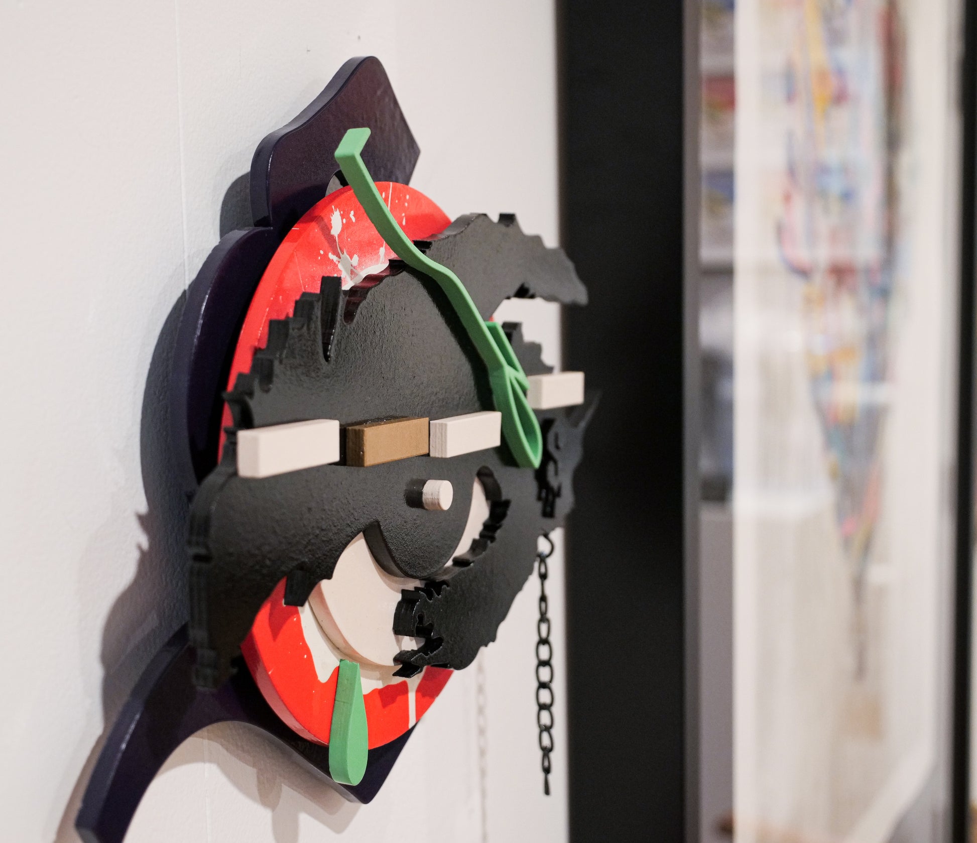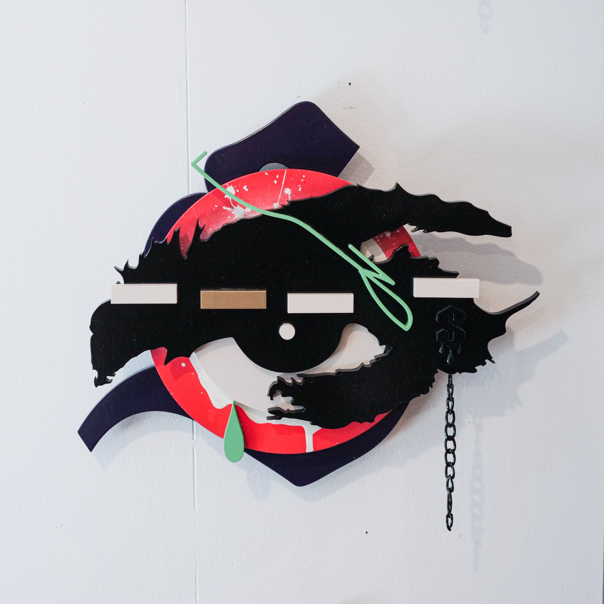 1 of 1 Colourway - Series of 6 total. 14-piece, 7-layer plywood, spray paint, gloss varnish, black metal chain.