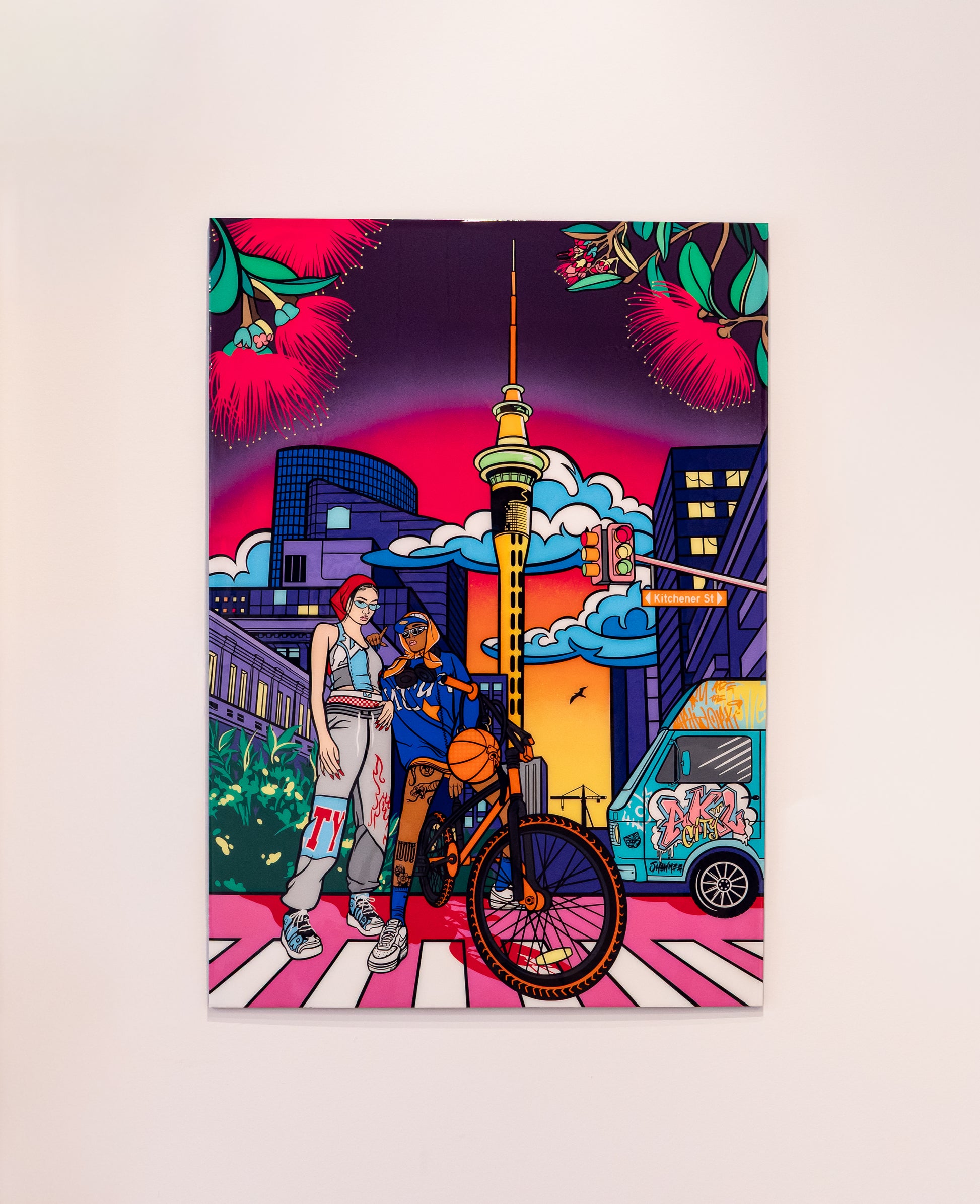 This work celebrates the unique flavour of Auckland: bold, multicultural, style-driven, and constantly moving. It channels the energy of the city’s streets - where creativity thrives, identities meet, and the 09 expresses itself in colour, attitude, and connection.