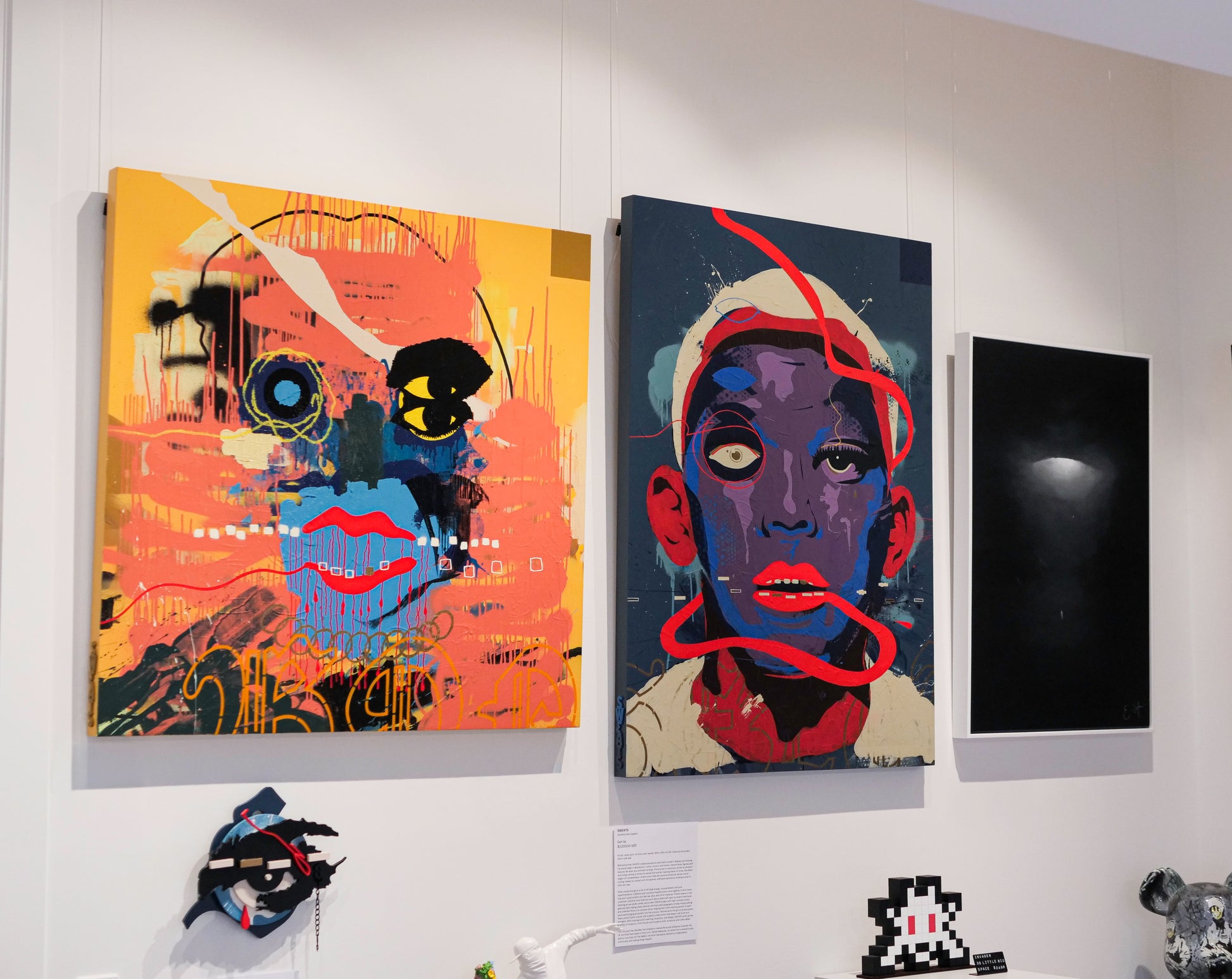 Original painting. Acrylic, spray paint, oil stick, satin varnish on NZ made ply box board,